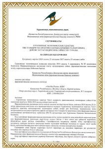 ТИІСТІ ӨНДІРІСТІК ПРАКТИКА ЕРЕЖЕЛЕРІНІҢ (GMP)ТАЛАПТАРЫНА СӘЙКЕСТІГІ РАСТАЛДЫ